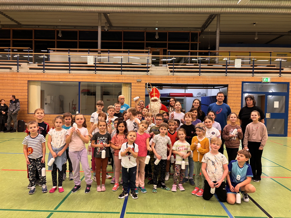 Nach dem Turnen sangen die Kinder dem Nikolaus das Nikolauslied und warteten gespannt auf den langersehnten Gast. Zur Belohnung beschenkte der Nikolaus die insgesamt 130 Turnkinder mit etwas Süßem und einer SCA-Thermotrinkflasche.